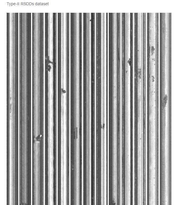 RSDDs数据集包含两种类型的数据集:第一种是从快车道捕获的"I"型RSDDs数据集,其中包含67个具有挑战性的图像。第二个是从普通/重型运输轨道捕获的"II"型RSDDs数据集,其中包含128个具有挑战性的图像。两个数据集的每幅图像至少包含一个缺陷,并且背景复杂且噪声很大。RSDDs数据集中的这些缺陷已由一些专业的人类观察员在轨道表面检查领域进行了标记。
