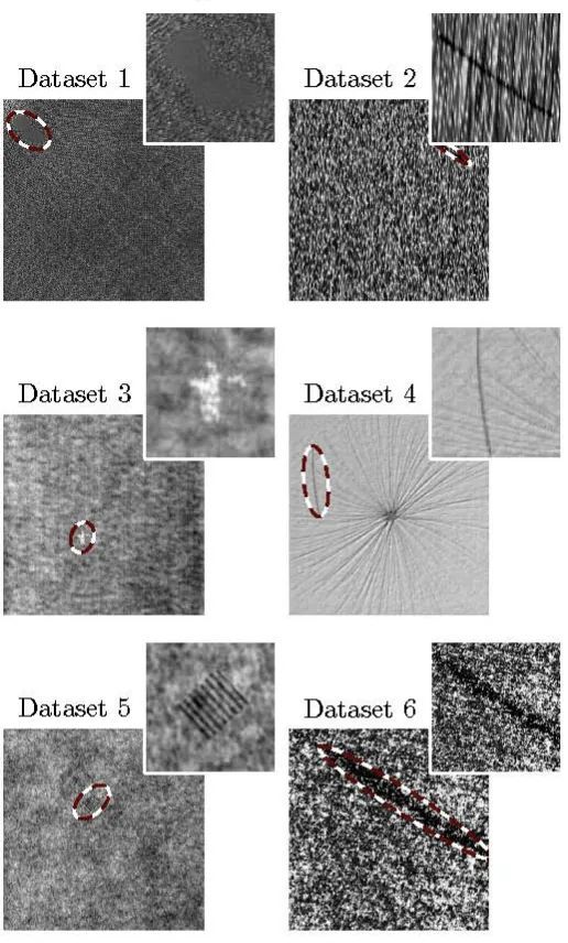 该数据集主要针对纹理背景上的杂项缺陷,为较弱监督的训练数据。包含10个数据集,前6个为训练数据集,后4个为测试数据集。每个数据集均包含以灰度8位PNG格式保存的1000个“无缺陷”图像和150个“有缺陷”图像,每个数据集由不同的纹理模型和缺陷模型生成。“无缺陷”图像显示的背景纹理没有缺陷,“无缺陷”图像的背景纹理上恰好有一个标记的缺陷。所有数据集已随机分为大小相等的训练和测试子数据集。弱标签以椭圆形表示,大致表示缺陷区域。