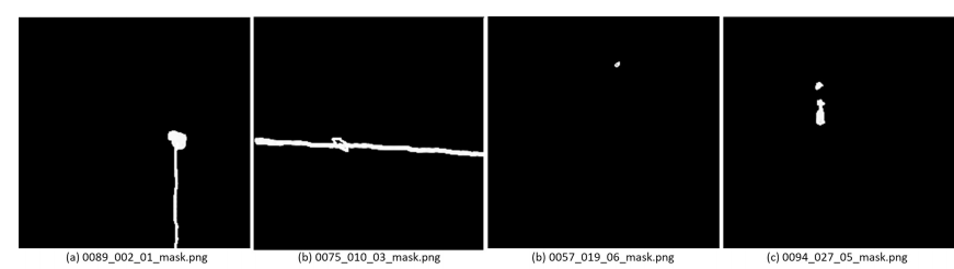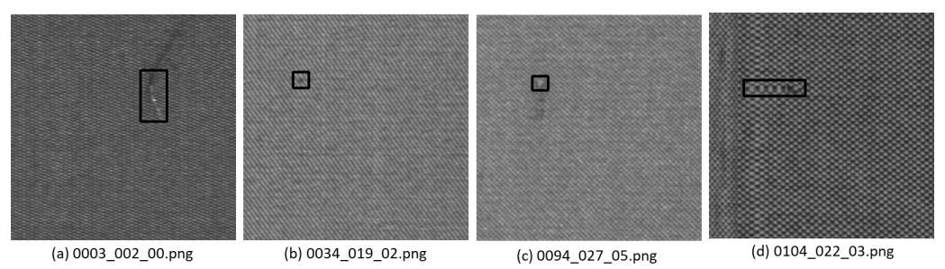 该数据集由7个不同织物结构的245张4096 x 256像素图像组成。数据集中有140个无缺陷图像,每种类型的织物20个,除此之外,有105幅纺织行业中常见的不同类型的织物缺陷(12种缺陷)图像。图像的大尺寸允许用户使用不同的窗口尺寸,从而增加了样本数量。数据集还包含所有具有缺陷的图像的分割mask,使得白色像素表示缺陷区域,其余像素为黑色。
