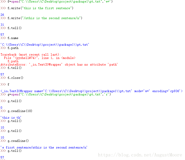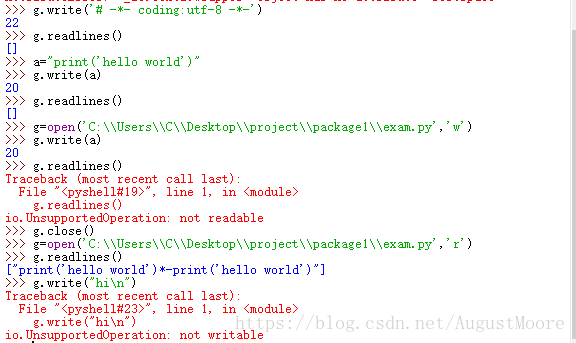 如果open()函数选择的是mode='r',那么只可以读,而不可以写。如果选择'w'模式,只能写不能读(接到上面):