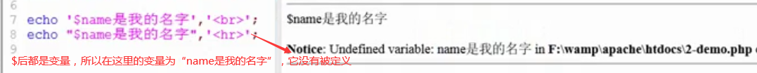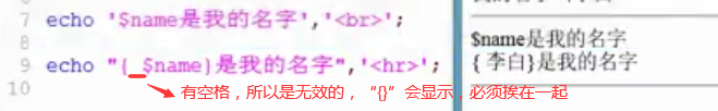 解决方法:可以将$name放到“{}”里面,{与$紧靠一起时“{}”不会显示,不分先后,紧靠一起就行。