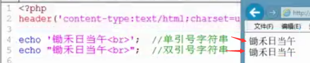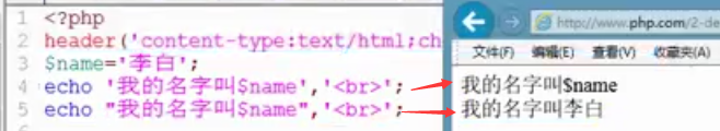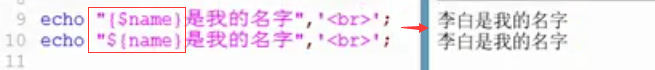 注:单引号是真正的字符串,双引号要做运算(将字符串中的变量替换成值),因为双引号要运算,单引号不需要运算,所以单引号的执行效率比双引号要高。
