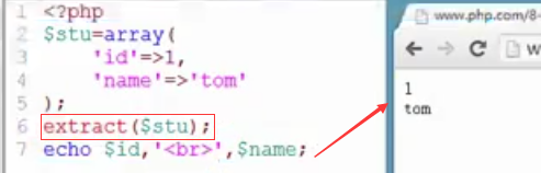 从数组中将变量导入到当前的符号表中,键名做变量名,键值做变量的值