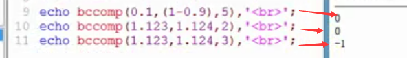 如果要比较浮点数,通过bccomp(值1,值2,比较的小数位数)函数比较,如果两个数相同就返回0,如果左边的大于右边的就返回1,反之返回-1。如: