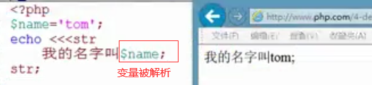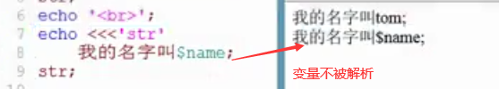 heredoc相当于是双引号字符串,nowdoc相当于单引号字符串。