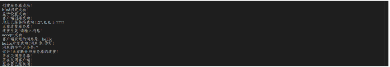至此,client和server的封装完成,相信你也自己跟着再次敲了一遍代码,那么现在,就要开始通信了,那么在刚开始的时候,我们要想清楚,这个是怎么开始通信的?首先,我们先看一下流程: 先进行server的socket和bind和listen -> client的connect连接server -> socket 开始accept接收 -> client 开始发送消息send -> server 接收消息 -> server回复消息 -> client 接收消息 -> 关闭通信通道 -> 关闭server -> end;