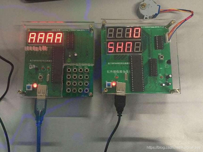 自己研究生阶段做的小课题,包含两块电路板,一个是发射端,一个是接收端,发射端的信号可以控制接收端的数码管显示以及步进电机的正转、反转及停止,可以运用在教室窗帘的开合上以及井下对电机的操控。