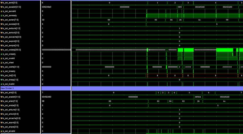 当DDR初始化完成之后,我们在AXI4总线上可以看到如下数据传输。