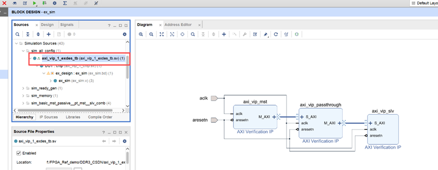 passthrough组成的。左边的axi_vip_1_exdes_tb为激励文件。