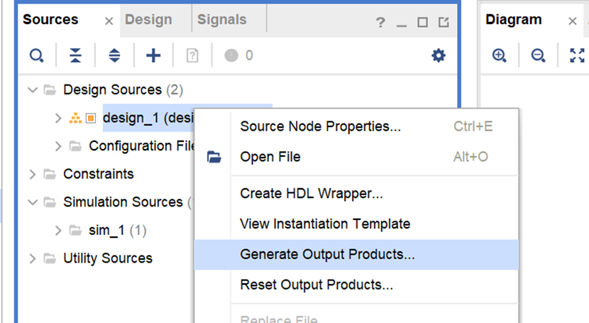 右键选择Generate Output Products 对Block Design中的所有ip核进行编译