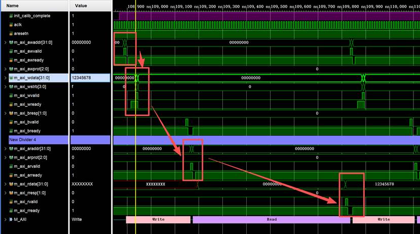 之后我们查看AXI总线,可以看出我们第一笔往0x4000_0000地址写了0x12345678