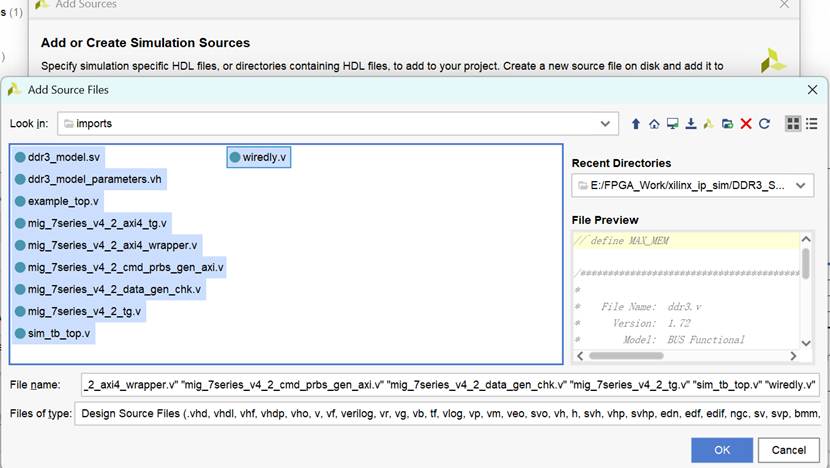 1 将xilinx自带的mig的example工程中的import内部的文件导入到现在的工程里面(mig的example的生成参考:FPGA DDR3实战(二):手把手教你仿真DDR3(MIG IP核))。