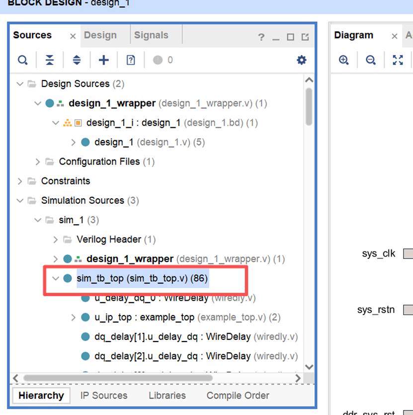 2 导入之后在Sim Source里面就能看到sim_tb_top,我们将在这个文件上进行修改