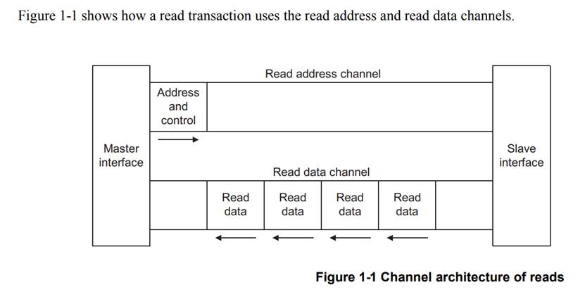 AXI4_FULL的读通道如下图所示,可以看出主要包括读地址通道、读数据应答通道。