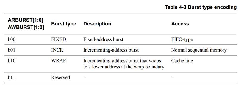 突发类型:00固定地址,01递增突发,10回环突发。 |
