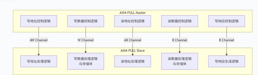 为了更直观地理解其架构,我们通过下图来审视AXI4-FULL的完整通道结构: