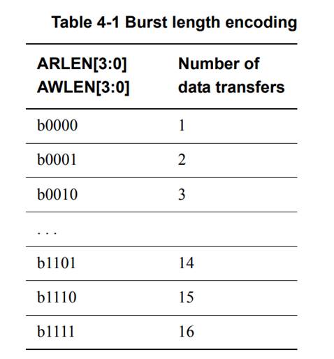 突发长度。AWLEN = N 表示突发 N+1 个数据传输。 |