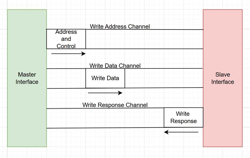 AXI4_LITE的写通道如下图所示,可以看出包括写地址通道、写数据通道、和写响应通道