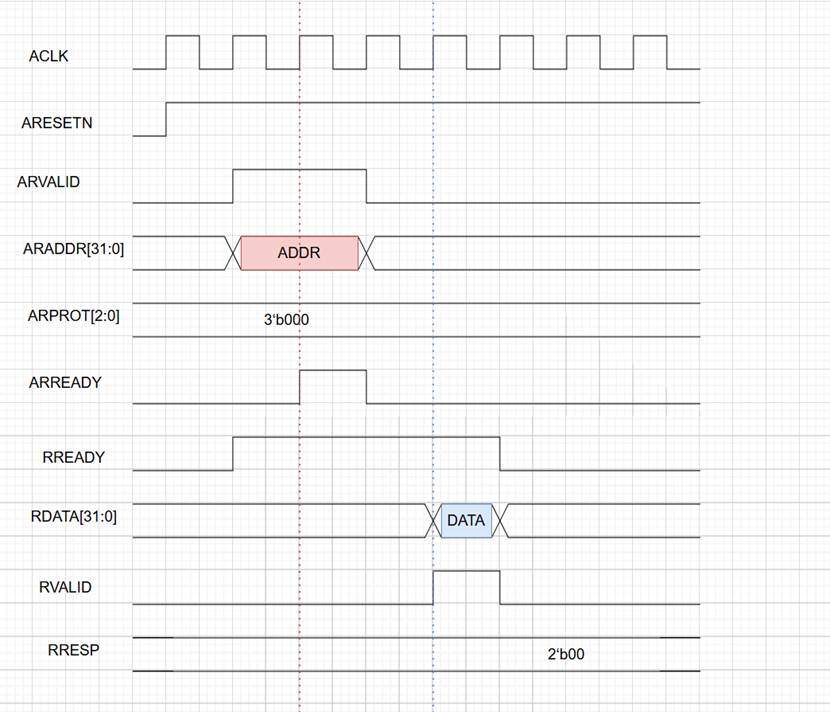 AXI4_LITE的读通道如下图所示,可以看出主要包括读地址通道、读数据应答通道。