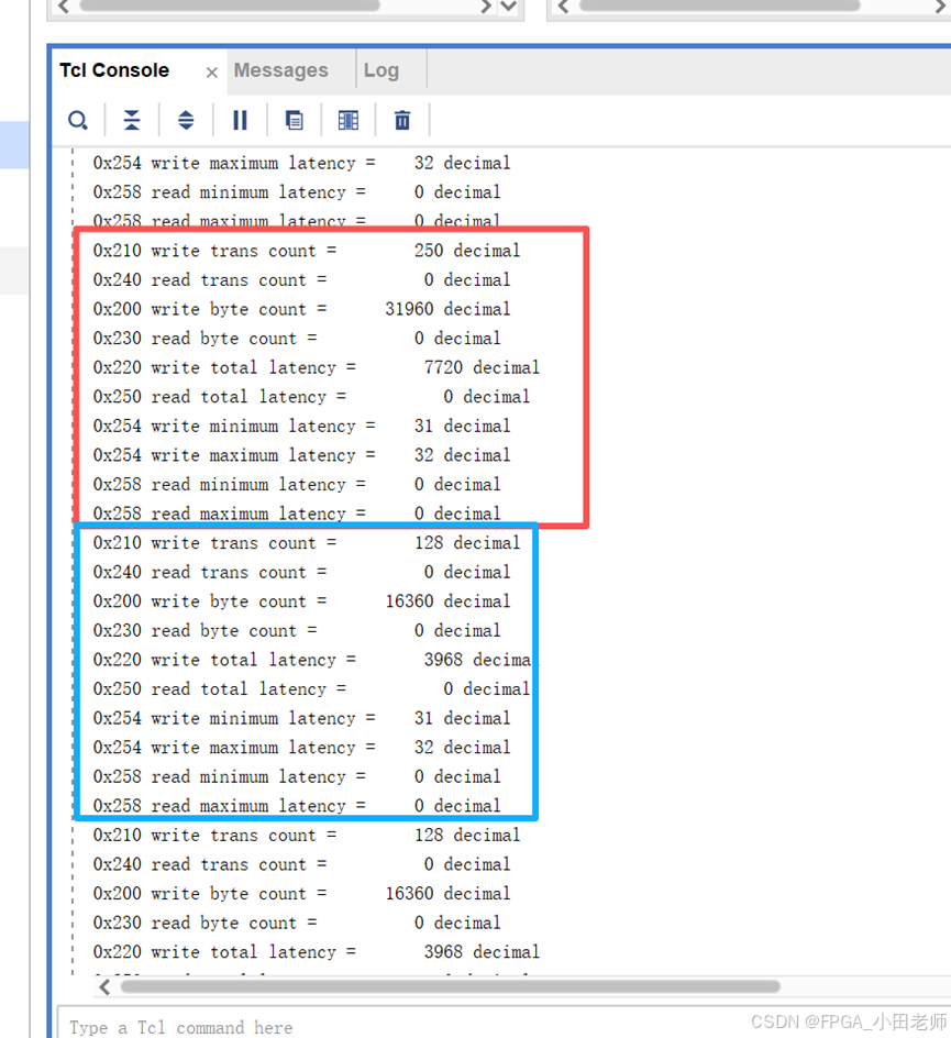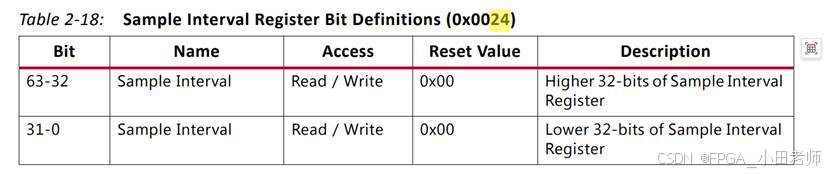 比如我们时钟100MHz对应10ns,采样间隔4096(寄存器0x0024的值)即每4096*10ns统计一次,这一段时间写传输的数据量是n个byte(寄存器0x200的值),则写的吞吐率为 n/(4096*10ns),其常用的单位是B/s,即每秒传输多少个byte。