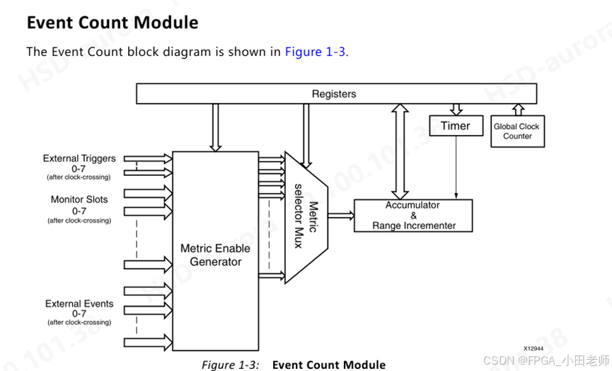 Range Incrementer:将事件计数与范围寄存器比较,用于统计特定范围内的延迟