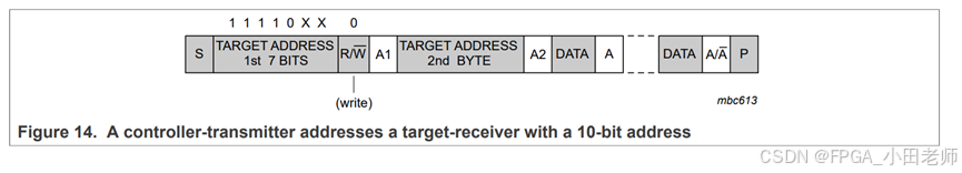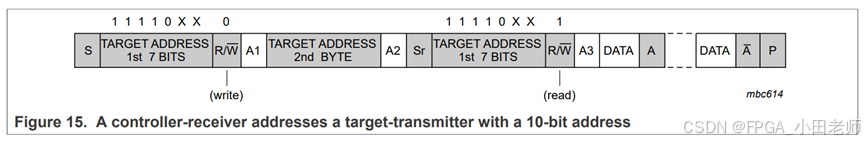 起始字节00000001(0x01)可以像7位寻址那样用于10位寻址之前,为低速微控制器提供额外的准备时间。