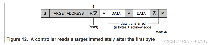 数据字节1 + ACK + 数据字节2 + ACK + ... + 数据字节N + NACK + STOP