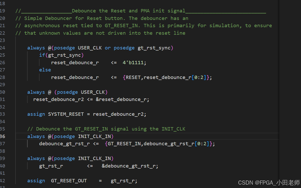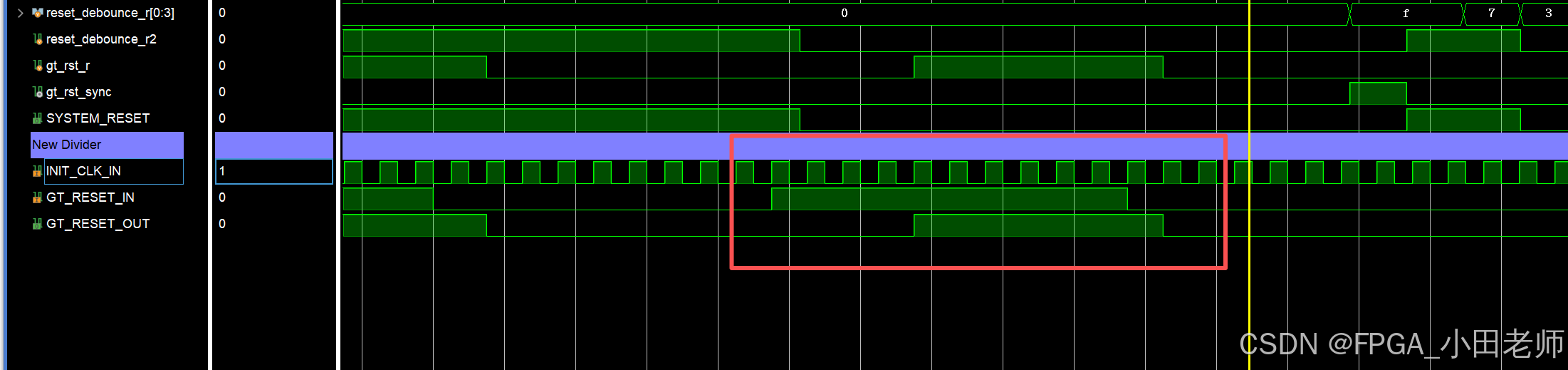 也就是说GT_RESET_IN必须保持4个高电平,GT_RESET_OUT才会被检测到高电平;