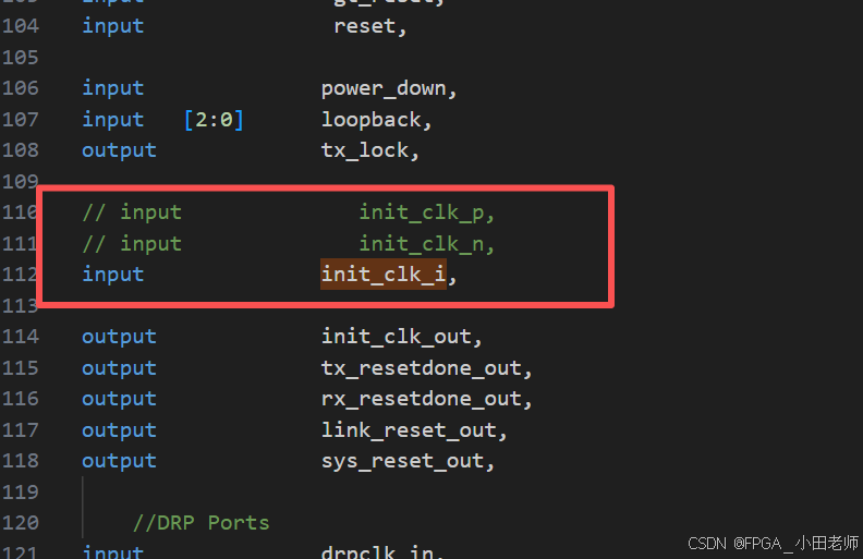 首先init_clk需要使用单端的,不使用差分信号,这里我们需要进行修改: