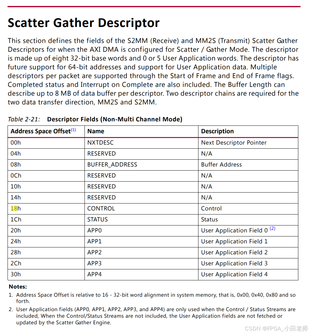 对于 MM2S 和 S2MM 这两个数据传输方向,需要两条描述符链。