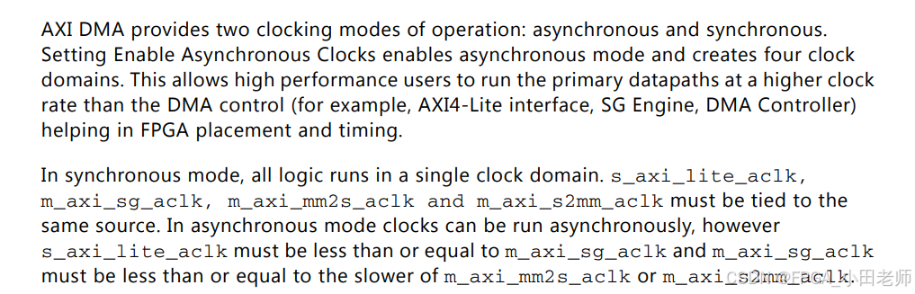 AXI DMA支持同步和异步两种时钟模式: