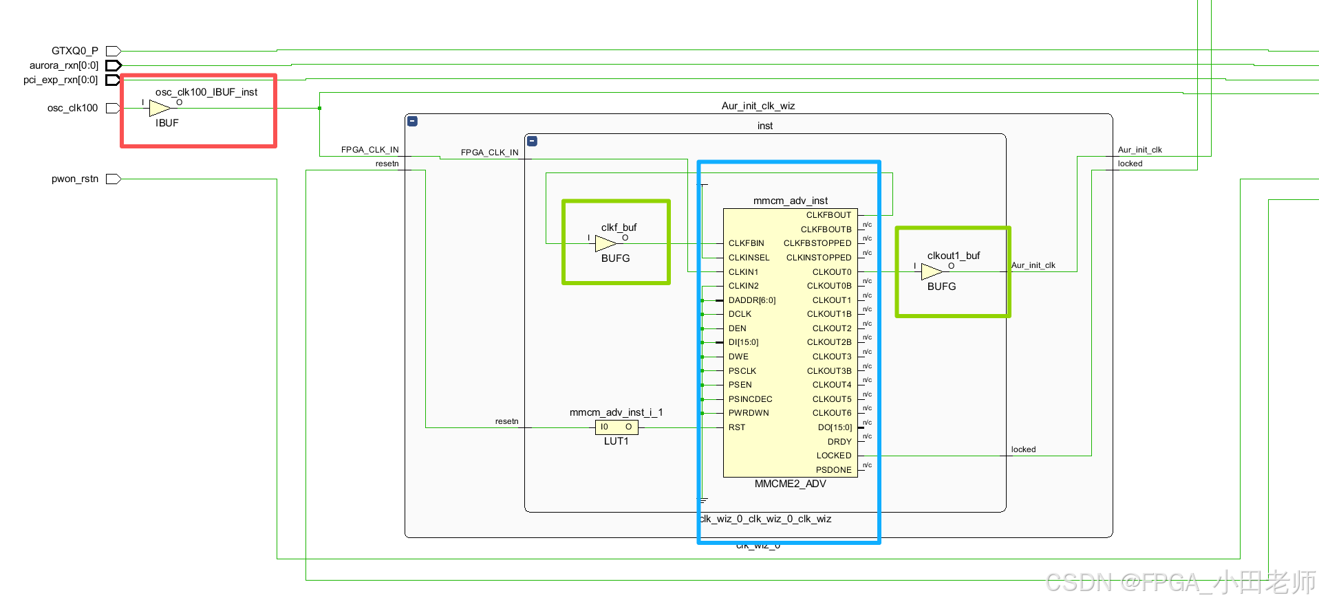 如果咱们是1个clk_in产生7路时钟,那消耗就是8个BUFG,那咱在BUFG资源紧张的时候,就可以通过选择输出时钟的资源属性,来进行资源平衡,比如使用BUFGCE等等。