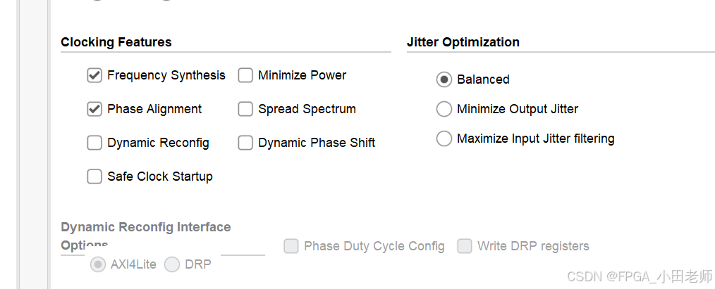- 相对于MMCM,其功耗更低,所以在功耗敏感的场景,,PLL有优势