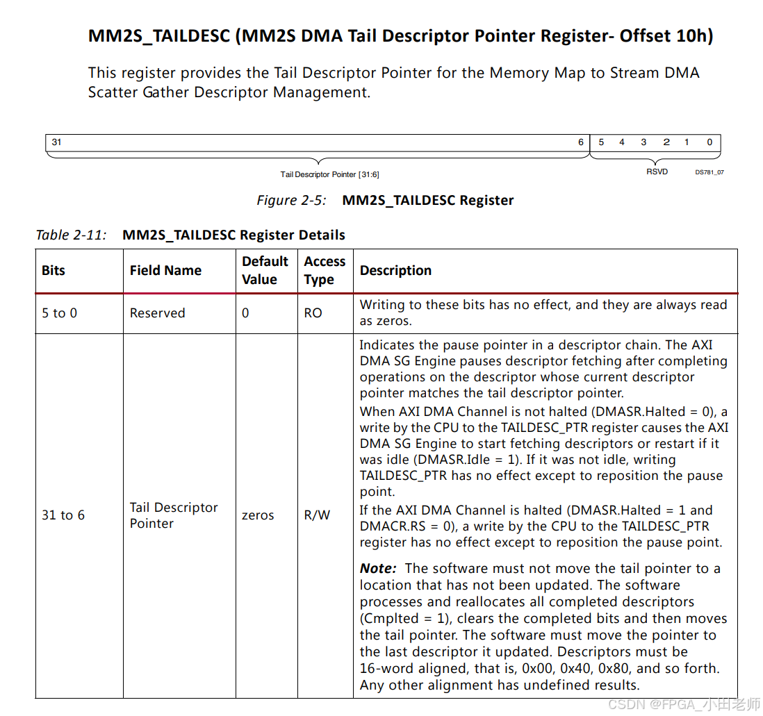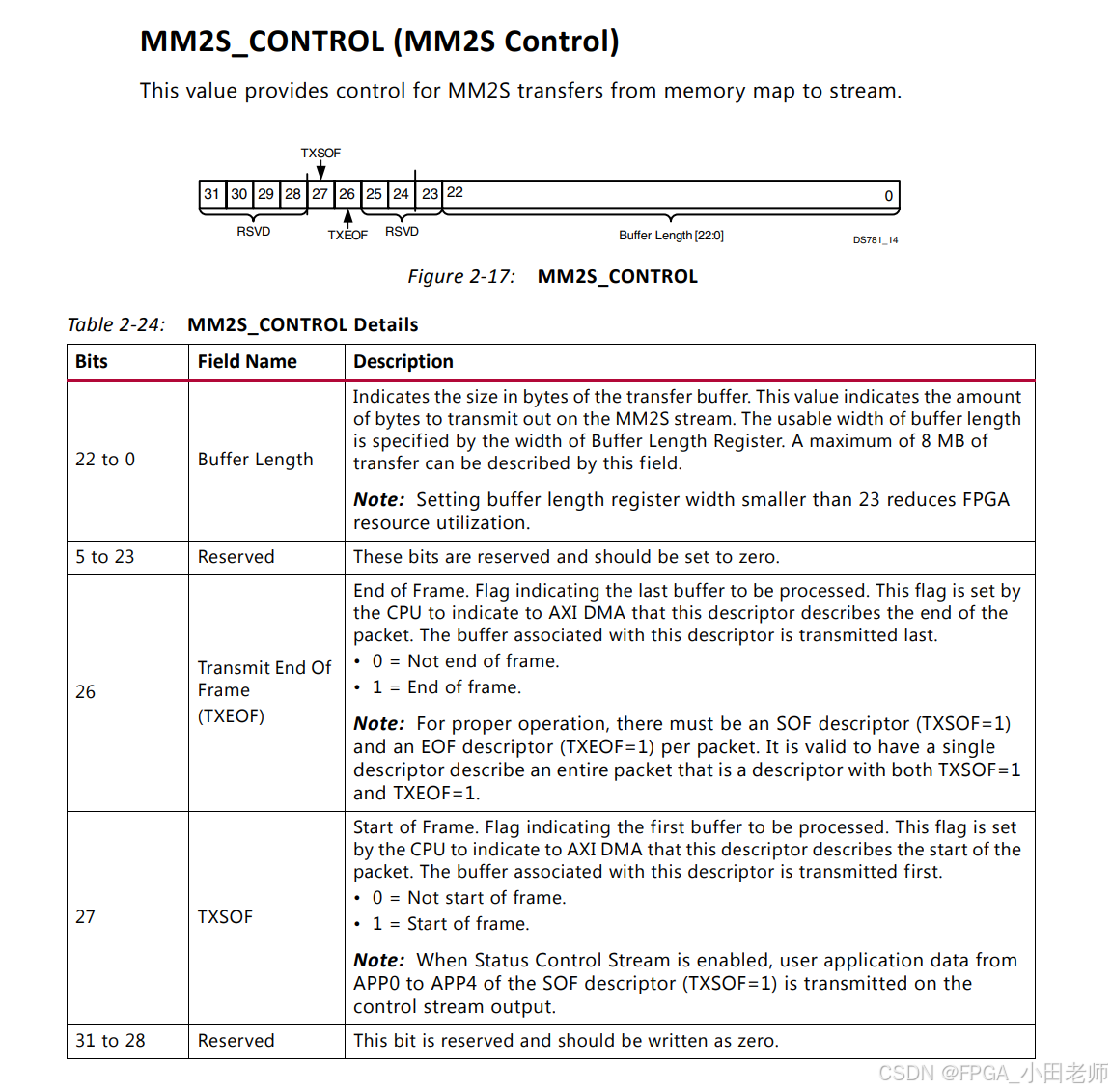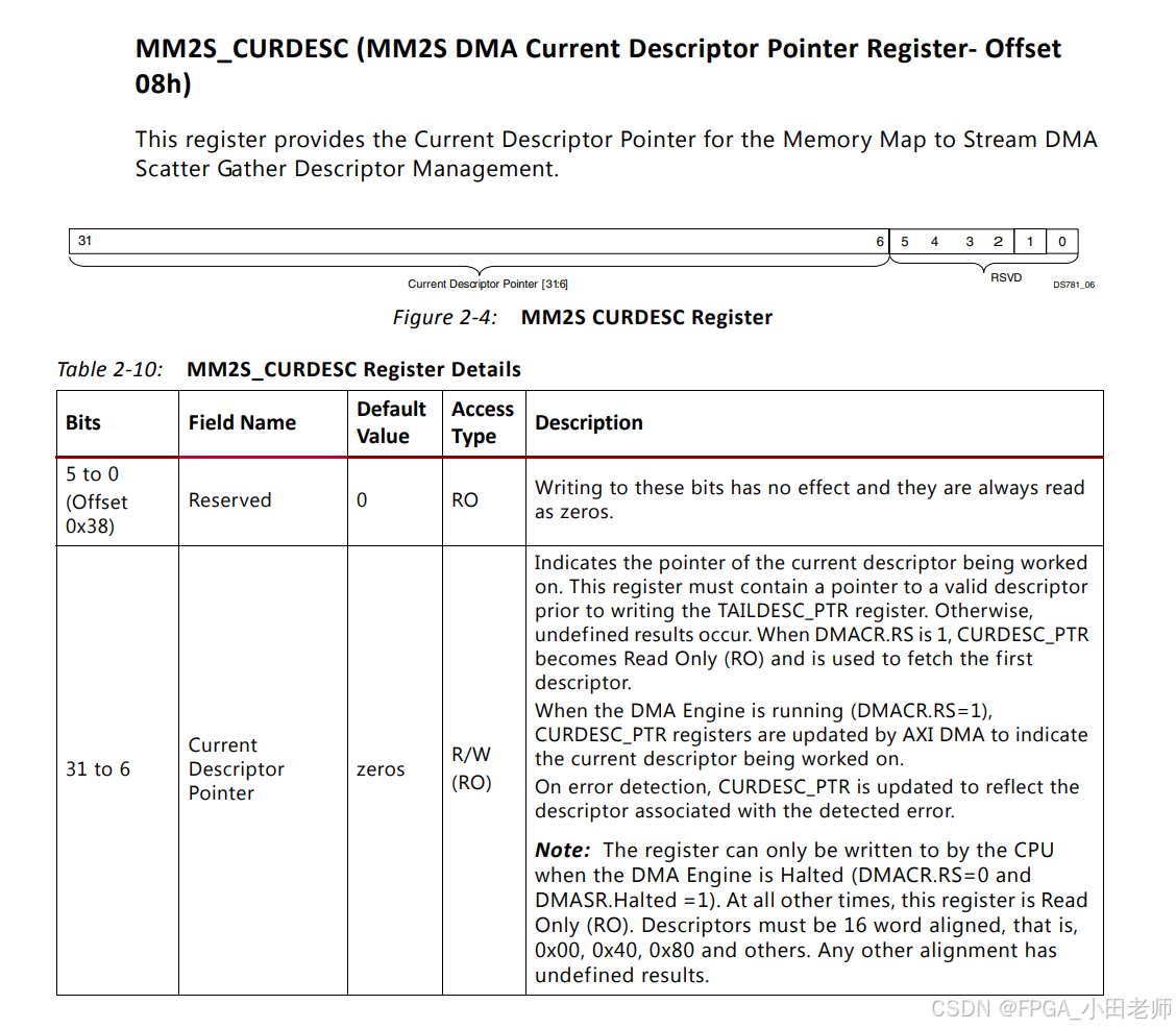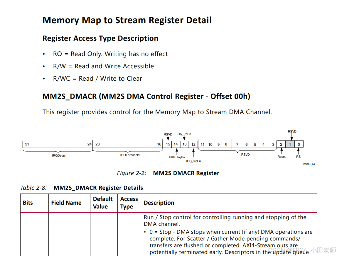 我们只对MM2S的寄存器进行说明,S2MM与MM2S是一样的,只是寄存器地址不同