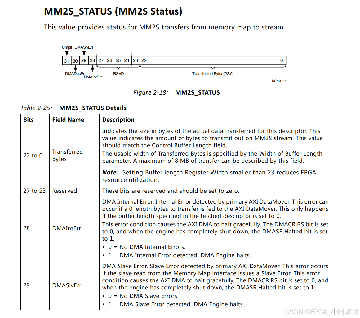 在AXI_DMA传输故障的时候,这个寄存器显得尤为重要。