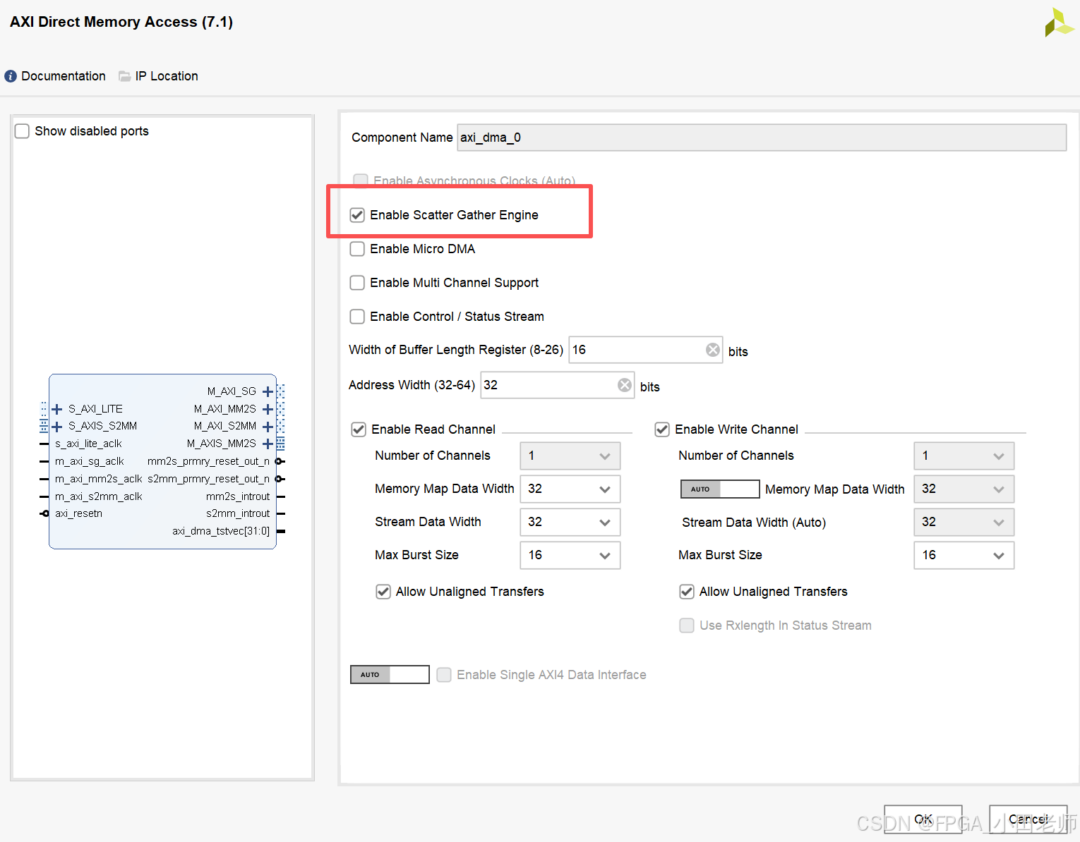 我们打开AXI Direct Memory Access 7.1的配置界面: