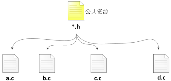 通常,一个常规的C语言程序会包含多个源码文件(.c),当某些公共资源需要在各个源码文件中使用时,为了避免多次编写相同的代码,一般的做法是将这些大家都需要用到的公共资源放入头文件(.h)当中,然后在各个源码文件中直接包含即可。