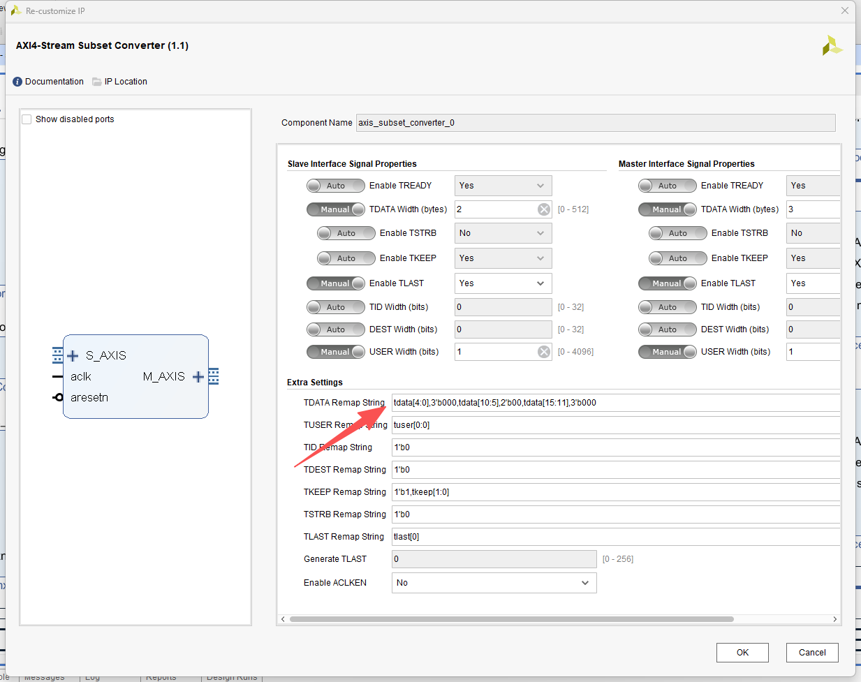 这里的auto配置是等你连线后才会显示的莫慌。然后这里是M_AXI_S2MM本质是是M:主机,AXI:AXI4协议,S2MM:slave to memory map,被作为主机接口时,就是要发送数据给ddr3的,被作为从机接口时,就是一个中转站,接口数据然后传给ddr3的。