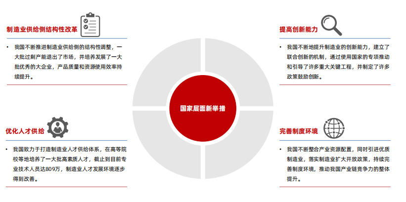 我国已出台供给侧结构性改革等新举措,以此应对部分制造业的转移,并支撑我国制造业高质量发展。