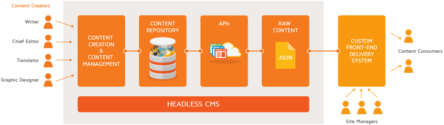 - 内容和展示分离。传统 CMS 由于其界面布局等原因会制约内容的发展,有了 CaaS 之后作者只用关心内容而不必关心界面设计,只需要生产优质内容。