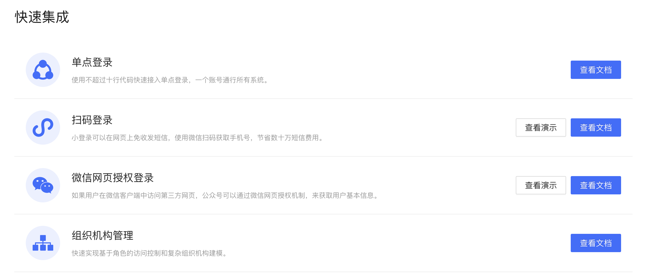 Authing 提供大量的快速集成方案,省去了查看各种文档的时间。