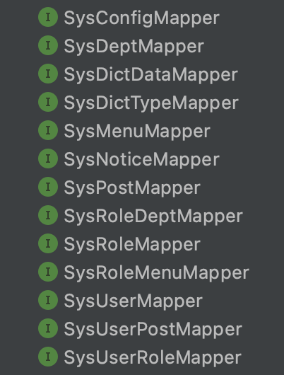 此时,就相当于完成了写一堆用户、机构、角色信息表、关联表类、一堆 mapper 以及接口类。