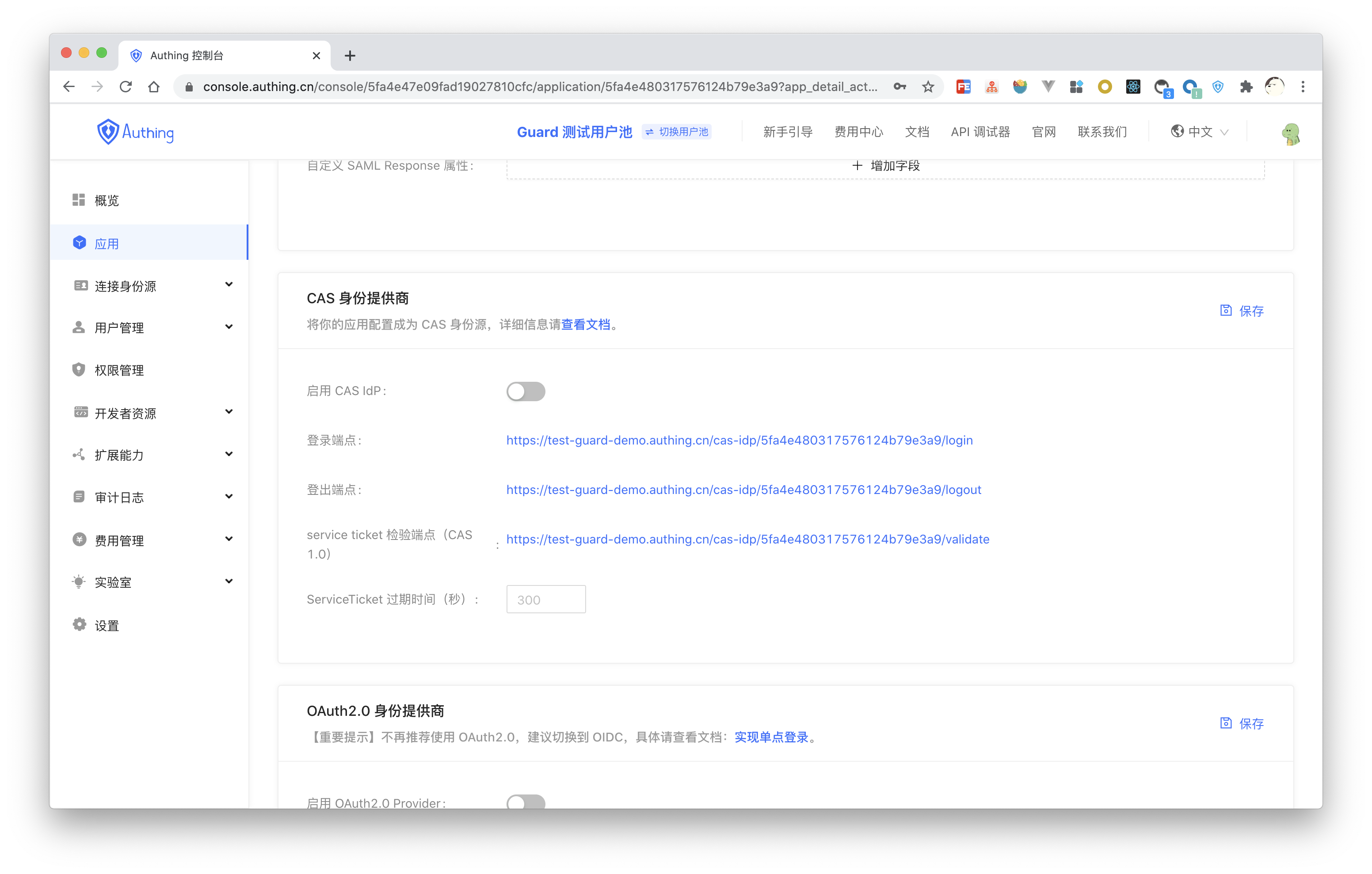 - 支持 CAS IdP,能将应用作为 CAS 身份提供商。
