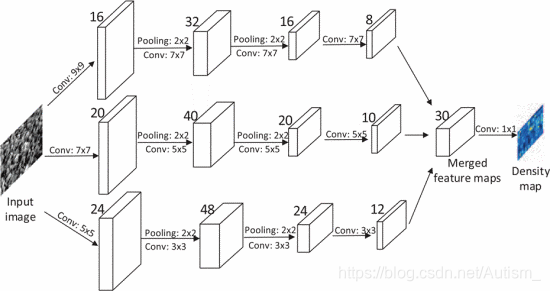 Multi-column Convolutional Neural Network:本文章是使用深度学习中的卷积神经网络实现人群计数。上海科技大学Yingying Zhang等人将多列卷积神经网络应用于单张图像人群计数问题上(Single-Image Crowd Counting via Multi-Column Convolutional Neural Network)。