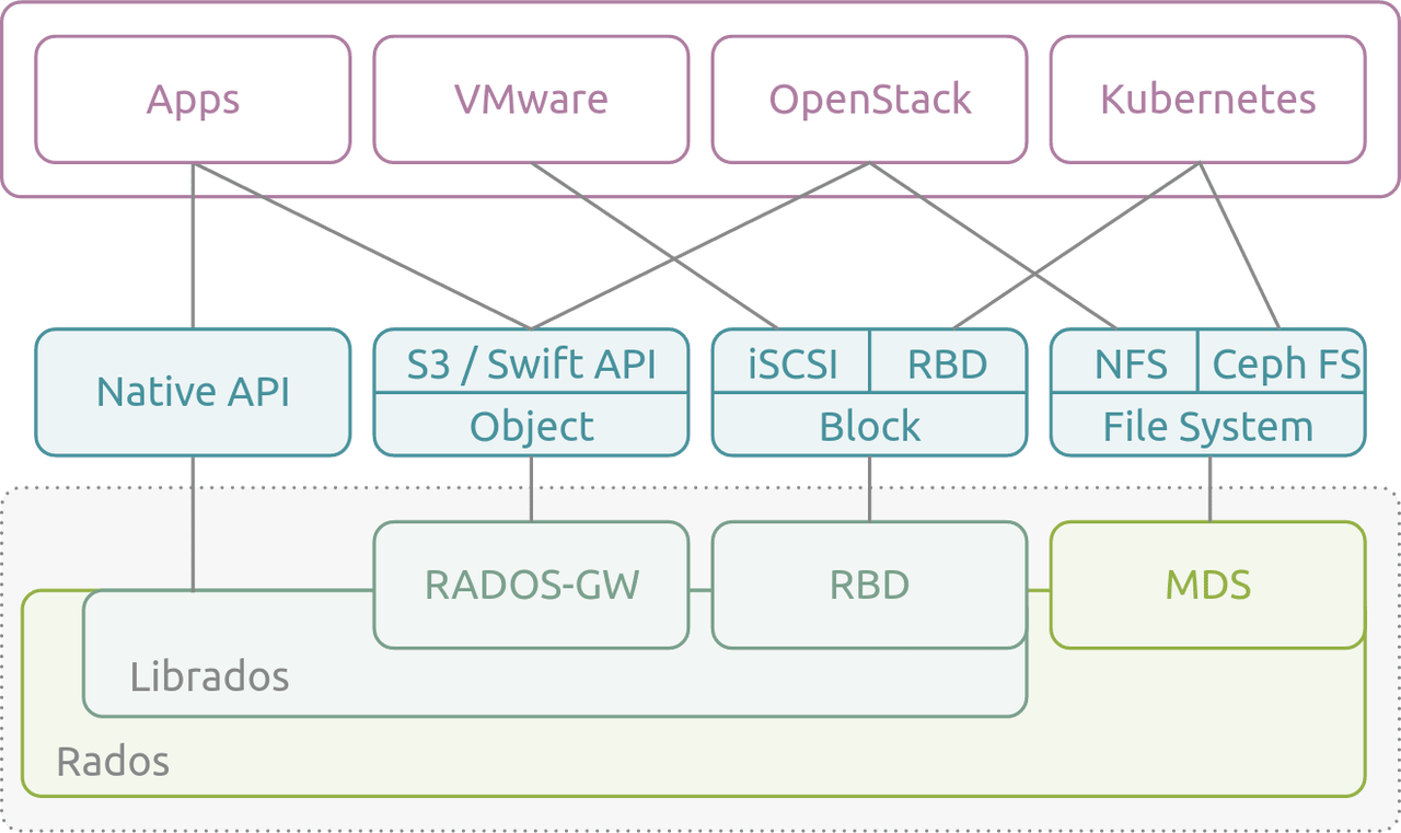 Ceph[1] 是一个开源的分布式对象,块和文件存储系统。该项目诞生于 2003 年,是塞奇・韦伊的博士论文的结果,然后在 2006 年在 LGPL 2.1 许可证发布。Ceph 已经与 Linux 内核 KVM 集成,并且默认包含在许多 GNU / Linux 发行版中。Ceph 的特点在于其同时提供了对象、块、文件系统的存储能力,可以适应各种不同的存储诉求。
