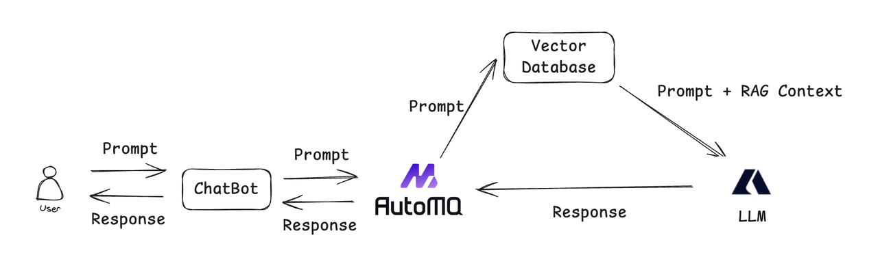 Kafka 是 AI 数据基础设施中的重要组成部分。聊天机器人接收用户的输入需要根据 RAG 结合 LLM 做实时的推理。在这个过程中需要分发大量的数据。与 DeepSeek 通过技术创新来降低 LLM 训练推理成本有异曲同工之妙的地方在于 AutoMQ 也通过基于 EBS WAL 和 S3 的共享存储架构对 Kafka 架构进行创新,在保证 Kafka 100% 兼容性的基础上可以帮助客户降低 至少 50% 以上的 Kafka 成本。AutoMQ 在 Kafka 架构上的创新以及带来的性能和成本效果获得了 Apollo 公司的认可,成为对方选择我们的重要原因。