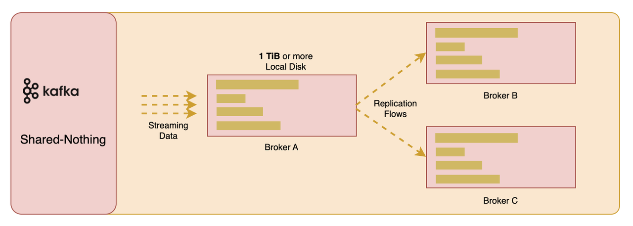在十几年前,Kafka 诞生于一个以 IDC(Internet Data Center)为主要场景的时代。当时的计算和存储资源通常是紧密耦合在一起的,形成了一种存算一体化的 Share-Nothing 架构。这种架构在当时的物理数据中心环境中非常有效,但随着公有云技术的成熟,这种架构的局限性也逐渐显现出来。存算一体的 Share-Nothing 架构由于计算存储强耦合,没有办法将存储层彻底解耦出来将持久性、高可用等能力卸载给云存储服务。这也意味着 Share-Nothing 架构无法发挥成熟的云存储服务规模化的技术和成本红利。此外,存算一体的架构也使得 Kafka 缺乏弹性、难以扩展。Kafka集群进行容量调整时,将涉及大量的数据复制。这会影响其容量调整的效率,并且在容量调整期间还将影响正常的读写请求。