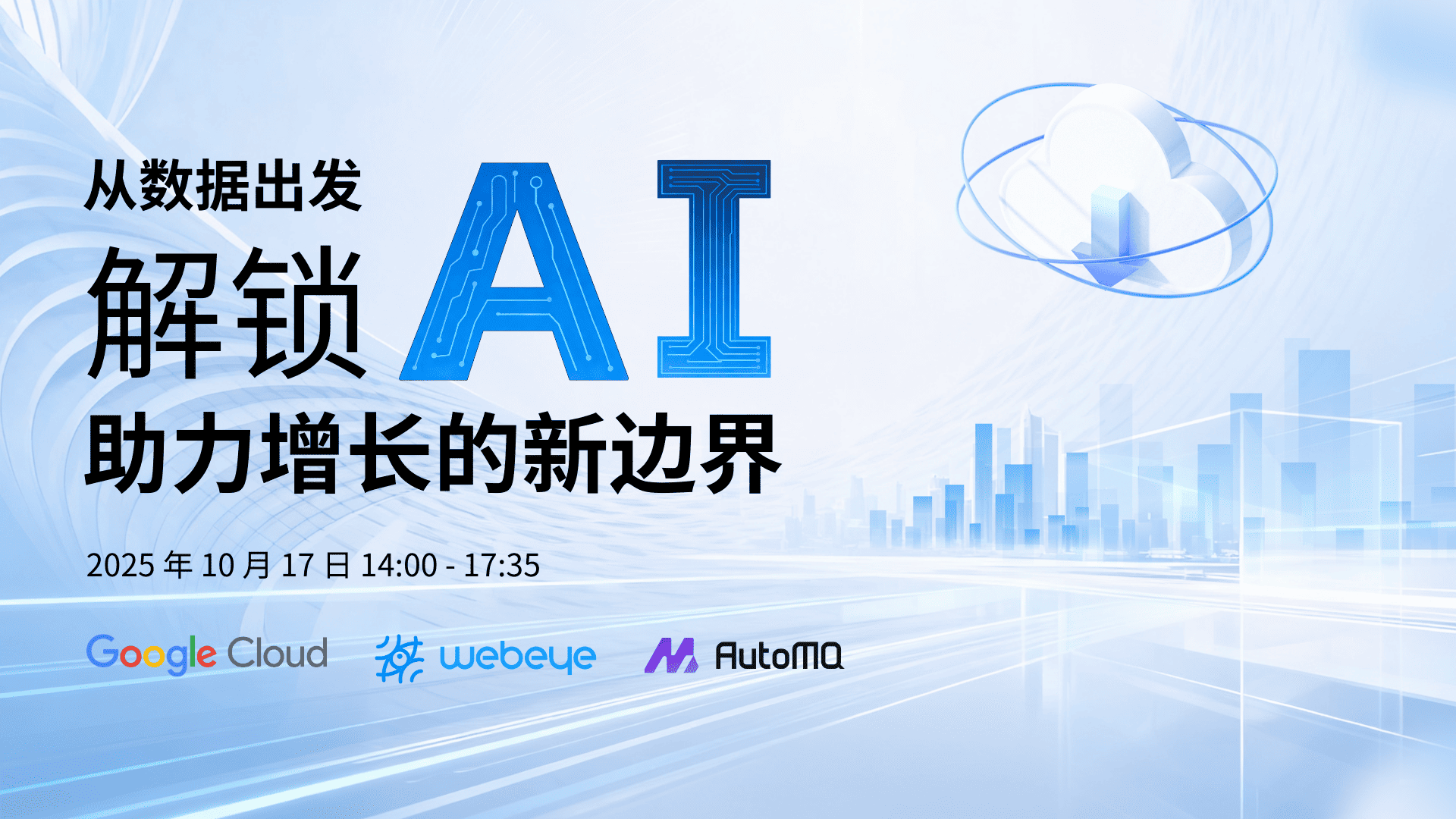 AutoMQ 将联合 WebEye 与 Google Cloud 共同举办“从数据出发,解锁 AI 助力增长的新边界”闭门私享会。在这里,你将: