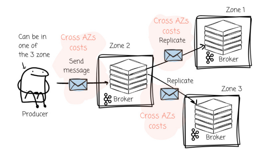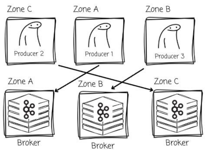 其显著优势之一在于大幅削减了跨可用区(Cross-AZ)传输的成本。系统能够无缝地将流量从生产者路由至与其位于同一可用区的 Broker,从而避免了跨区流量费用的产生。
