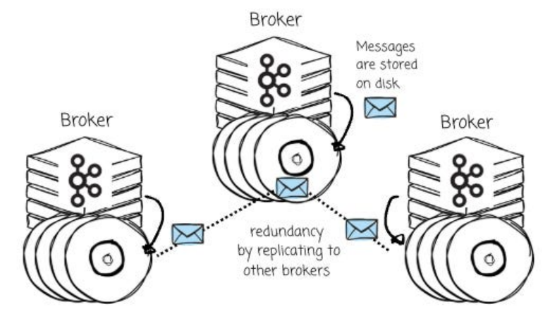 基于上述背景,Kafka 的 Broker 被设计为将消息直接持久化存储在本地磁盘上,并通过 Broker 间的消息复制机制来实现数据冗余与高可用性。
